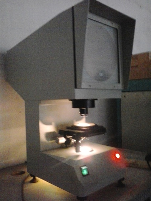 根据需要,本仪器为单一投射照明,光源通过一系列光学元件投射在工作台上,再通过一系列光学元件将被测试样缺口轮廓清晰的投射到投影仪上。物体经二次放大和二次反射成正像,在投影屏上所看到的图形与实际试样放置的方位一致。