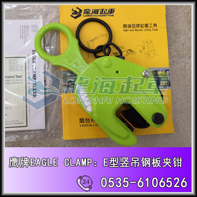 E-2鹰牌竖吊钢板夹钳烟台开发区龙海起重工具有限公司销售鹰牌EAGLE CLAMP品牌,我公司成立于1997年,专业从事起重工具行业20多年,致力于高端、追求质量高端;服务宗旨,高端品牌产品,服务于高端客户,从经营以来产品质量靠得住,零投诉。