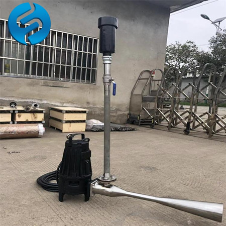 (2) 潜水射流式曝气机由潜水排污泵,混合室,底座等构成。曝气为单一方向扇形扩散。