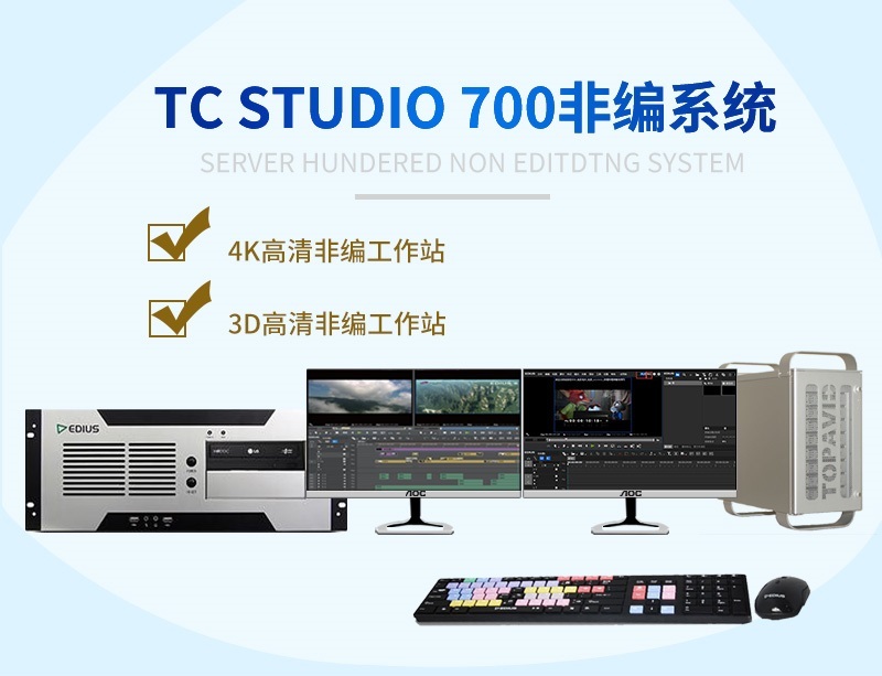 2、TC-STUDIO系列非编以EIDUS 软件为编辑核心,并结合高性能的硬件平台,使其迅捷、易用和可靠的编辑特性得以充分的发挥。
