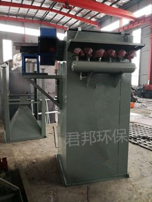 120袋单机布袋除尘器由灰斗、上箱体、中箱体、下箱体等部分组成,上、中、下箱体为分室结构。工作时,含尘气体由进风道进入灰斗,粗尘粒直接落入灰斗底部,细尘粒随气流转折向上进入中、下箱体,粉尘积附在滤袋外表面,过滤后的气体进入上箱体至净气集合管-排风道,经排风机排至大气。 清灰过程是先切断该室的净气出口风道,使该室的布袋处于无气流通过的状态(分室停风清灰)。然后开启脉冲阀用压缩空气进行脉冲喷吹清灰,切断阀关闭时间足以保证在喷吹后从滤袋上剥离的粉尘沉降至灰斗,避免了粉尘在脱离滤袋表面后又随气流附集到相邻滤袋表面的现象,使滤袋清灰彻底,并由可编程序控制仪对排气阀、脉冲阀及卸灰阀等进行全自动控制。