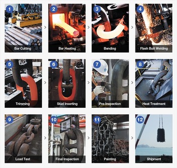 江苏奥海采用先进的闪光焊接技术,按国际标准ISO1704、国家标准GB549、GB/T20848及十大船级社认可和军工认可,专业生产链径22~182mm船用锚链、系泊链、大规格矿用链条、无限长度锚链、无限长度系泊链、焊接锚、三角锚、钢制浮筒及其附件等。目前建成的一期项目年生产能力为20万吨。