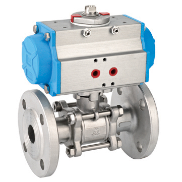 三片式法兰气动球阀产品概述:三片式法兰气动球阀采用一体化结构,与ZMA气动执行器相配,造型美观、轻便宜人,拆装快捷,操作灵活,性能卓越,配套简单,流通能力大,广泛应用于食品,环保,轻工,石油,造纸,化工,电力等行业的工业自动化系统中。