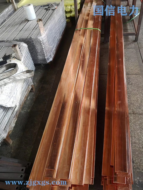 浙江国信电力设备有限公司生产的铜覆钢扁钢采用电镀法或连铸等工艺制作的新型水平接地体,采用最先进的工艺将纯度99.9%铜覆盖至特制钢芯表面制成,导电性能与同等规格的紫铜排相同,但造价远低于纯铜,防腐性能远胜于镀锌扁钢材,具有导电性能好,低电阻、防腐性能优越、运输方便、施工方便、施工效率高等诸多优点,是替代圆钢、角钢、镀锌扁钢等传统接地材料的最佳选择;国电天邦公司生产的铜覆钢扁钢采用冷拉扁钢,外镀0.254mm厚度纯铜,铜层牢固,耐腐蚀性强,弯曲180°不脱落、不开裂。适用于一般环境和潮湿、盐碱、酸性土壤极产生化学腐蚀介质的特殊环境等高要求的工作接地、保护接地、防雷接地、防静电接地的水平接地体。电镀铜覆钢扁钢的机械性能更为卓越,防腐性能更为优越,建议用于腐蚀情况较为严重的地方,且受机械应力要求不高者使用镀铜钢扁钢(例:极酸环境中的水平接地体),请根据具体情况采用不同种类的镀铜钢扁钢。铜覆钢扁钢往往用在水平接地线的用途是相符的;铜覆钢扁钢分为直线型,规格一般为6米/根,也可定制其它长度规格。