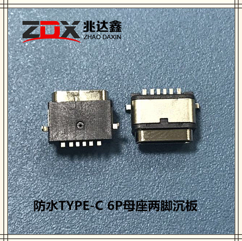 防水TYPE-C 6P母座两脚沉板