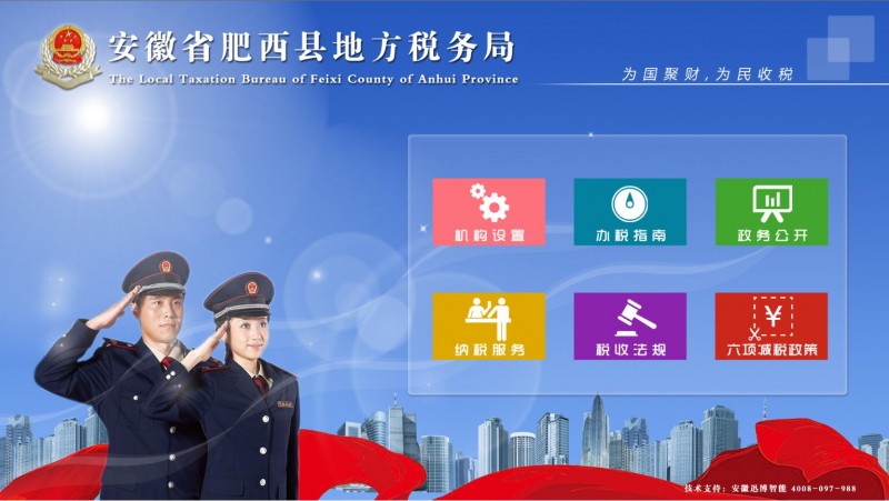 迅博明税务系统多媒体查询软件依据客户的要求设计而成的。整界面操作简单明了,一目了然,配合极富动感的FLASH动画,设计不同的栏目,来展示办税信息流程,办税所需材料,税收政策等信息,方便群众知道详细办事流程及所需要准备的材料,不断提升的办事效率,让“只跑一次腿”变得真实可行。