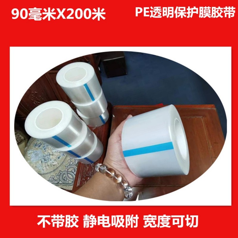 可树 温州厂家PE静电保护膜90毫米200米无胶静电分切加工PE静电保护膜是通过复合设备将多种材料同步共挤流涎制得的表面保护膜。这种方法生产的保护膜又称为PE静电保护膜、PE静电膜、PE自粘膜等。表电保护膜不含任何胶粘剂,具有环境保护适应性好、产品质量高等优点。因此,静电保护膜倍受用户关注,被认为是今后表面保护膜生产工艺的发展方向。