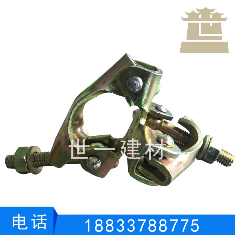 沧州世一建材有限公司主要生产销售各种建筑扣件脚手架配件系列产品(冲压扣件锻造扣件铸造扣件),是国内目前规模大、品种全、质量优的扣件生产制造企业。本公司常年出口中东国家、欧美国家、东南亚国家。公司完全按照国家标准,以及生产标准,产品已通过国家建筑工程质量检测中心检验合格,并通过国际质量管理体系认证。
