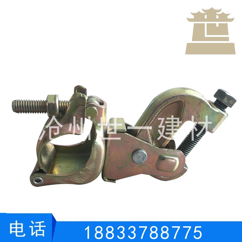 沧州世一建材有限公司主要生产销售各种建筑扣件及脚手架配件系列产品(冲压扣件、锻造扣件、铸造扣件),是国内目前规模大、品种全、质量优的扣件生产制造企业。本公司常年出口中东国家、欧美国家、东南亚国家。公司完全按照国家标准,以及生产标准,产品已通过国家建筑工程质量检测中心检验合格,并通过国际质量管理体系认证。