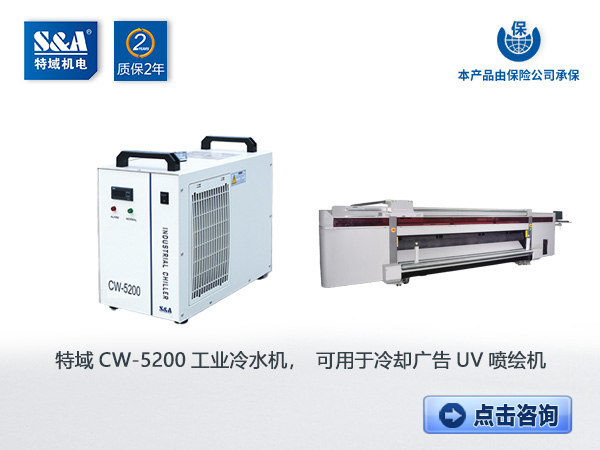 不知道从什么时候开始,追求个性化的东西已经成为这个时代的潮流,在日常生活中往往与我们大众审美不一样的东西更容易受到人们的喜爱。随着人们对个性化的东西需求大,促进了UV喷绘机的广泛使用,特别是在广告行业中UV喷绘机的使用更是频繁,UV喷绘机可以直接喷绘在任意平面材质上,以效率高、速度快受到许多广告UV喷机绘用户的青睐。另外广告UV喷绘机是以LED光源的特性,直接喷绘平面材质上的,不容许出一点差错,所以需要配置一台工业冷水机为广告UV喷绘机提供冷却,使喷绘工作进行更加顺利。