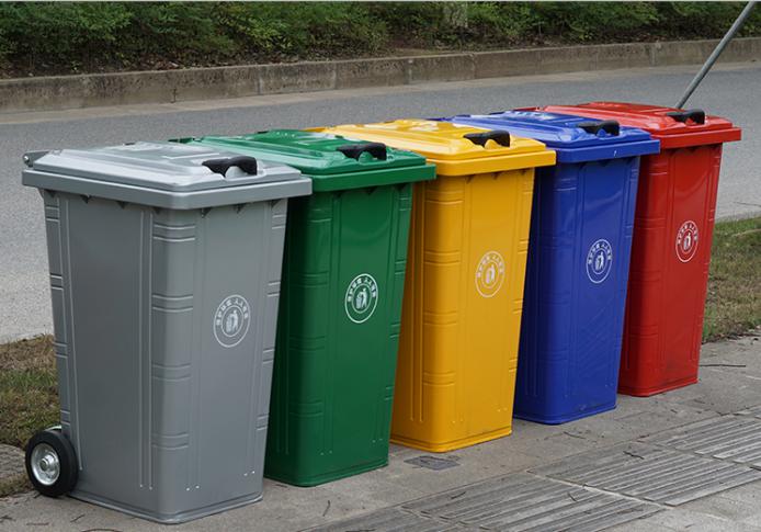 1、桶体采用1.8mm的优质热镀锌钢板制作:桶体尺寸:长720mm 宽580mm,高度(不含轮、盖)950mm。