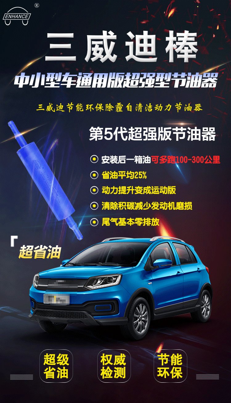 三威迪棒节能减排神器具有增强动力、滑行距离延长(手动挡汽车可以5挡起步)、机油不脏不黑保护发动机减少磨损,并可有效保护三元催化器等多个功效。当对着排气管闻时,一点异味都没有。