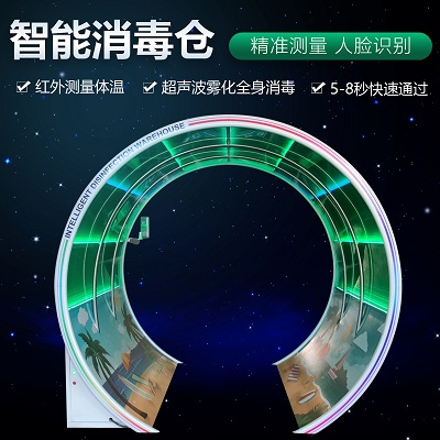 智能测温消毒仓,适用于车站、学校、写字楼、大院、各机构办事大厅、住宅小区、大型工厂、菜市场等人流量密集场所。其中主机含有电源装置、控制装置、传感器装置,消毒装置。主要功能:1.人脸识别测温,人脸识别快速通行,非接触式精准测温,智能高温预警拦截,减少不必要接触。2.超声波雾化消毒,消毒通道开始喷雾之前,人员会经过红外传感器的感应区域并检测到人员。 然后人员进入消毒通道,停留4至5秒钟,并在消毒完成后离开通道。 如果没有人站在红外感应区域,消毒喷雾1分钟后停止喷雾,电源打开时绿灯亮,缺少消毒液体时红灯亮。