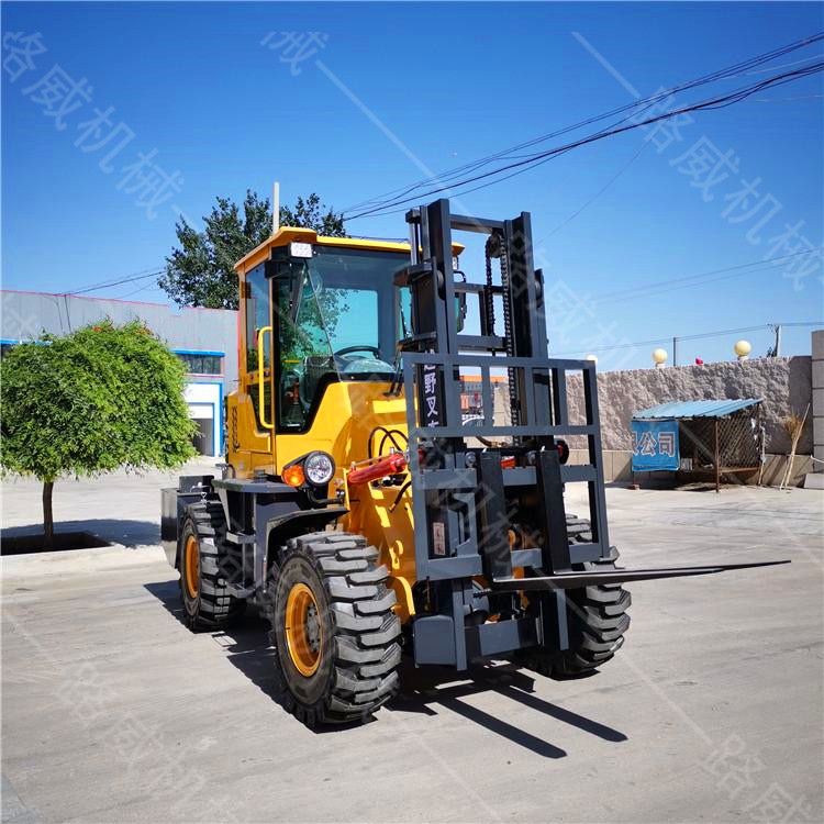 越野式叉车又叫野战叉车,它具有良好的机动性、越野性可靠性。是一种可以在坡地和不平地面上安全高地进行货物装、卸、堆垛及搬运作业的工程车辆平衡叉车一样.它可以装置货叉或更换多种属具来提高作业效率。越野叉车适用于道路修筑、城市建设、环境卫生、石料场、中小型土木工程、车站、码头、货场、仓库等地方,主要用来转运石料、设备、货物、城市垃圾箱以及集装物料等