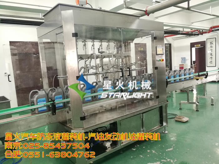 星火汽车防冻液灌装机是引进国外先进灌装机的成套技术,整机电气于一体,自行开发设计。本机功能齐全,结构合理,性能稳定,灌装准确,适用于食品,化工,制约等行业的各种液体的灌装。如汽车防冻液、助力转向油、自动变速箱油、化妆品消毒水,香水,红花油,保健酒等。灌装量可调,适合冷,热态灌装,特别适应异型瓶灌装。全机采用不锈钢制造,符合GMP标准。可根据用户的需要配置上瓶机,锁盖机,喷码机等装置。