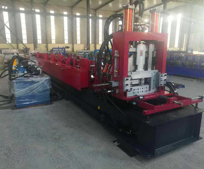 自动CZ型钢无极设备是一套可生产多种规格CZ型檩条成品的单卷成型机组。自动CZ型钢设备主要由被动装料架、整平装置、前剪切装置、成型主机、自动冲孔装置、无极成型后剪切装置、液压站、计算机控制系统等。