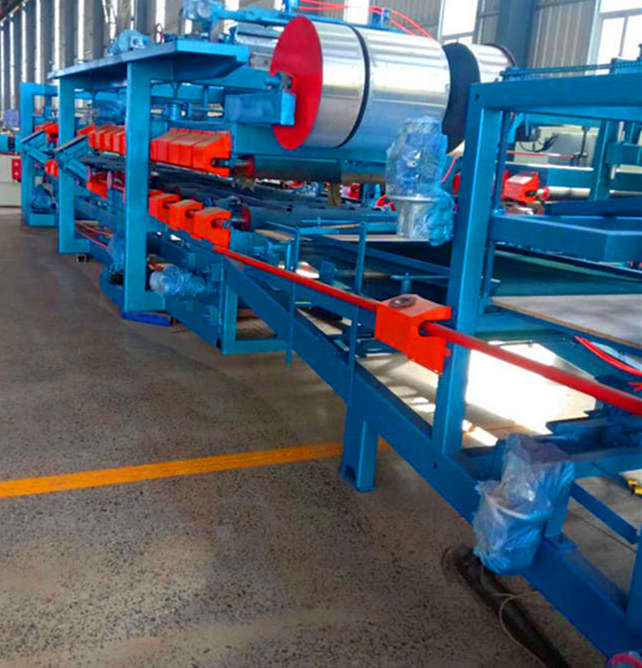 泡沫岩棉两用夹芯板设备生产工艺先进,以气、电、机械结合为一体,是生产金属隔热夹芯板的专用设备,具有生产多种板型的功能。