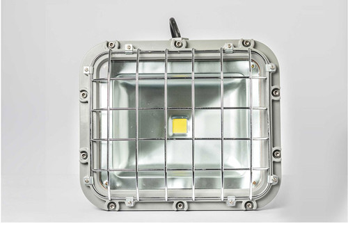 该巷道灯为隔爆固定型,由LED光源、反光杯、接线板、壳体、上盖、电缆固定装置、玻璃罩和网罩构成。