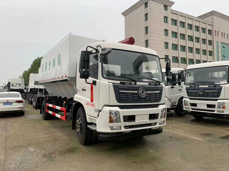 东风天锦单桥24立方国五散装饲料运输车:东风天锦驾驶室,康明斯180马力,法士特小8档变速箱,5000mm轴距,10.00R20钢丝胎,电动门窗,中控锁,ABS,方向助力,空调,整车尺寸:9000×2450×3800mm;罐体材质采用4mm优质碳钢板,整车3条绞龙,由3个5.5KW电机带动(西门子),顶部绞龙用液压控制举升,可左右旋转180°。罐体内分为叁个仓,可以独立控制各分仓卸料顺序和速度。