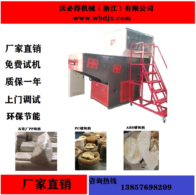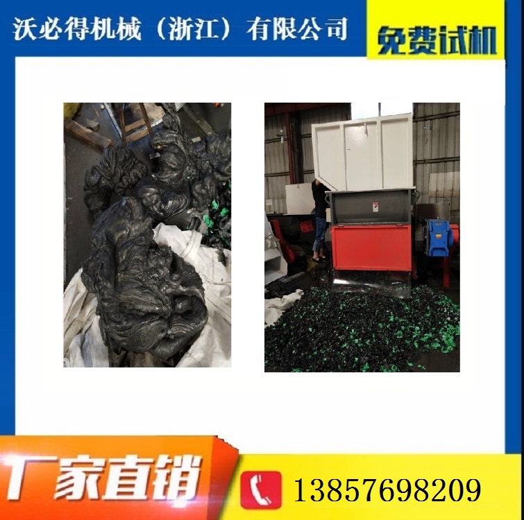 单轴撕碎机工作原理:液压推板将原料推送至主轴前面,主轴不停机转动刀片将塑料刮碎成小片小片便于回收。
