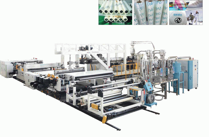 TPU材料为热塑性聚氨酯,分为聚酯和聚醚两大类型,TPU薄膜拥有卓越的高张力、高弹性、高耐磨和耐老化的特性,并且具有环保无毒、防霉抗菌、生物相容等优良特性,广泛用于鞋材、成衣、充气玩具、水上及水下运动器材、医疗器械、健身器材、汽车座椅材料、雨伞、箱包、包装材料等,并且也可以应用在光学和军工领域。本生产线采用高速挤出压延、流延成型方式,产品品质优良可控,产品厚度0.01-2.0mm范围,宽度1000-3000mm,适用   于各种颜色透明、磨砂、雾面、多层复合的TPU膜片产品系列。