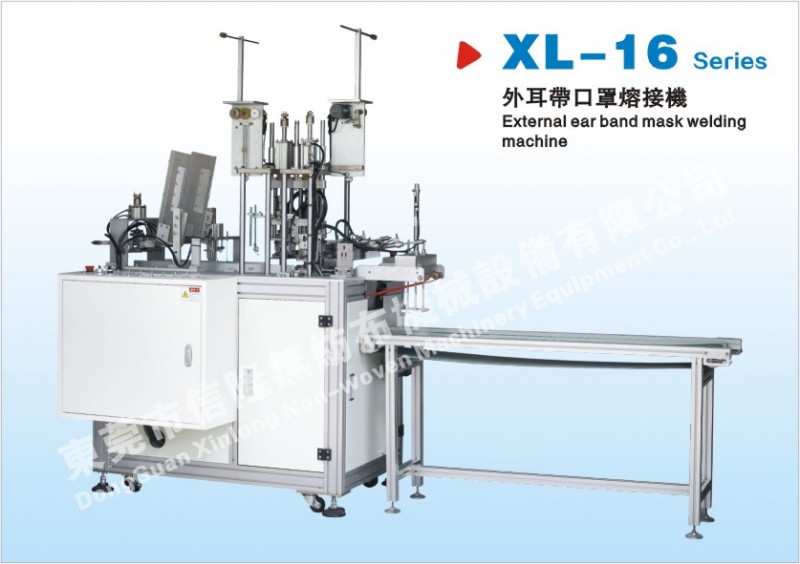 外耳带口罩熔接机XL-16是自动化生产外环松紧带口罩使用机本机,本机用超音波将松紧带熔合于口罩本体两侧,从而完成外耳带式口罩成品,僅需一名操作员将口罩本体一片片置于口罩治具上,也可以安装机械手自动放片机推进行放片,其余后续动作成品完成由机器自动操作完成。