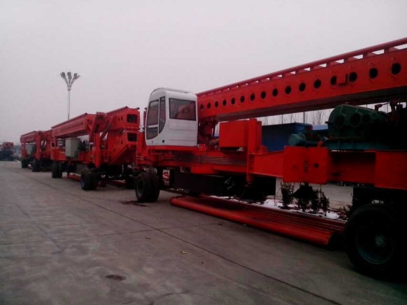 12、将钻杆提离地面约400mm,由专人指挥试机。观察整机行走,回转是否正常卷扬机制动器是否灵活可靠,行程控制开关动作准确,各电机运动方向是否正确,一切正常方可工作。