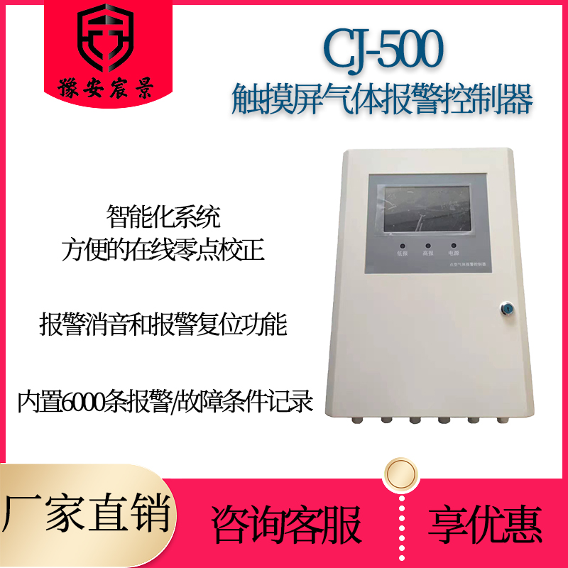 CJ-500触摸屏气体报警控制器是多点监控气体报警器,用于检测环境空气中待测气体的浓度,当环境中检测到待测气体的浓度达到或超过预置报警值时,控制器立即发出声光报警,以提醒我们及时采取安全措施,并启动执行器来控制驱动排风或其它外设设备,防止中毒事故、爆炸、及火灾发生,从而保障生命、财产的安全。