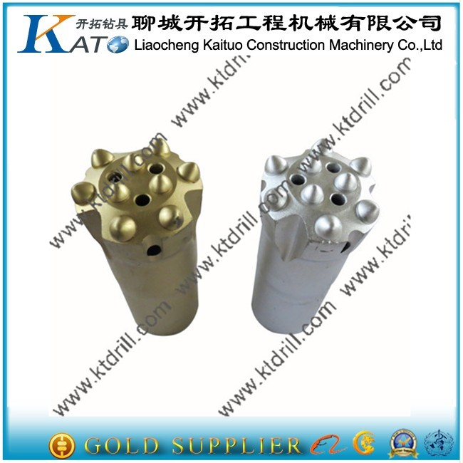螺纹球齿钎头(钻头),平面型,凹心型,易返式,易返凹心式(直径51-127mm) 连接套及异径连接器:(R22,R25,R28,R32,R38,T38,T45,T51) 钎尾:(R32,R38,T38,T45,T51螺纹等,能与Atlas Copco, Furukawa,Ingersoll Rand等国外公司配套)。 钻杆:R25,R28,R32,R38,T38,T45,T51螺纹等各种规格钎杆及阴阳螺纹钻杆。