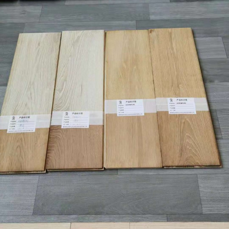 优木宝AB环保型木材漂白剂是我公司应市场需求,结合不同木材含量而综合开发的一种环保型木材漂白剂。具有高含量,高效率环保无毒、无气味、无残留、对眼睛无刺激性。漂白快速不返黄、成本低、操作简单、对人体无害的特点,漂白后木材经紫外线照射不返黄,不吸潮,不褪色,木材质感清晰导管干净,能很好去掉木材黑色素,矿物线,铁变色,热变色,水印及色差,优木宝A+B漂白剂1:1混合后可反复使用12-48小时,适用于桐木,松木,榉木、枫木、影木、桦木、樱桃木、水曲柳、柞木、印尼白木、红(白)橡木、欧橡,山核桃,椴木、楸木等多种木制品、木地板、木线条、实木家具、木雕刻工艺品、实木木皮,以及竹木粉浆、粉屑、木浆的漂白处理。效果优于同类产品,漂白处理后木材纹理清晰。能解决木材与酶、酸、碱、金属(铁)离子、氧化剂与还原剂等化学物质接触而引起的木材色变。为木制品行业研发一种提高木材价值的产品。