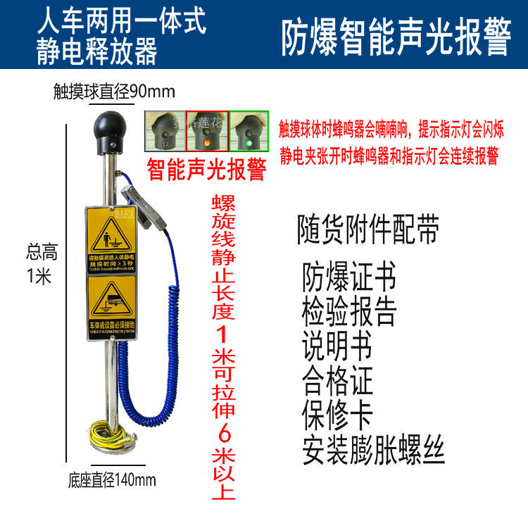 人体静电释放器+警示牌+接地线+安装螺丝等配件+说明书、合格证、保修卡、证书、检测报告。