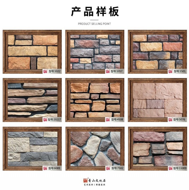 青山人造文化石采用德国进口“拜尔乐”颜料、轻质高强陶粒、石英砂、荷兰进口白水泥、优质硅酸盐水泥,属于〈绿色〉环保建材,可放心选购。 产品表面经过特殊技术处理,不起皮、不掉灰、经久耐用、不褪色、耐腐蚀、耐风化、强度高、抗冻与抗渗性好,是高品质的墙面装饰材料!可选择性多,风格颜色多样,组合搭配使墙面极富立体效果。