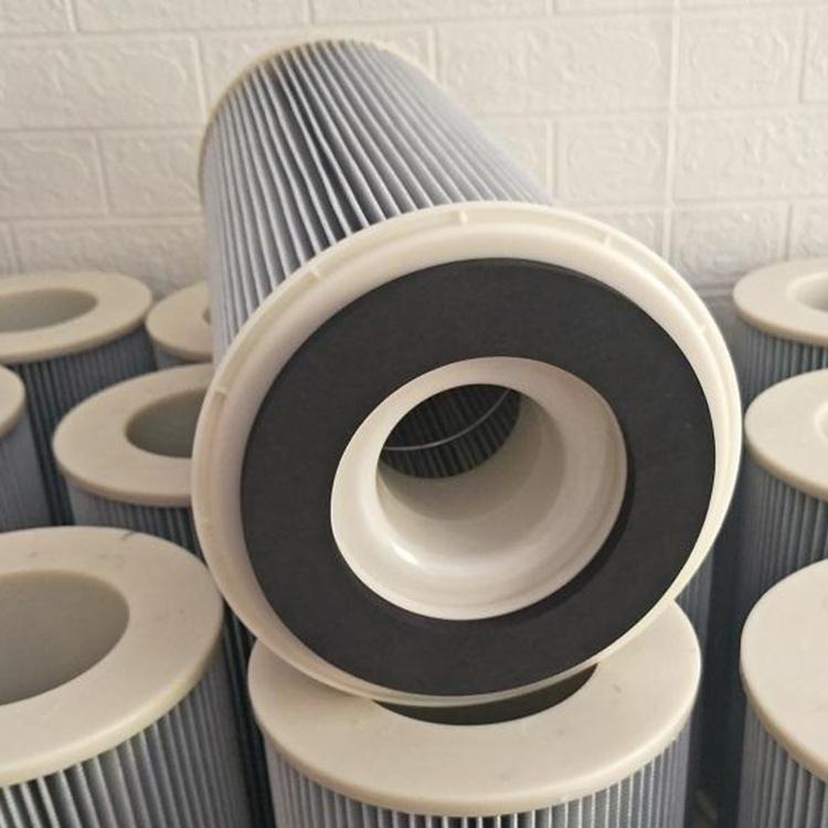 2、结构特点:a滤纸采用 的覆膜及打折技术、宽褶设计、表面光滑间隙均匀;b两端端盖≥0.8(mm)厚钢板冲压成形、喷塑、电镀防锈处理(顶部开口/底部开口/底部封底/带安装小孔);c内外有防腐处理保护网(外护网可选);d (密封胶圈)采用低硬度发泡密封胶圈密封确保无灰尘渗漏,过滤精度可达到99.9%;e内外网与滤料采用自动螺旋打胶机固定(或紧固带固定)、滤料与端盖粘接处选用滤筒聚氨酯发泡胶、确保无脱盖龟裂现象;f滤筒易于清灰、安装维修方便、使用寿命长。