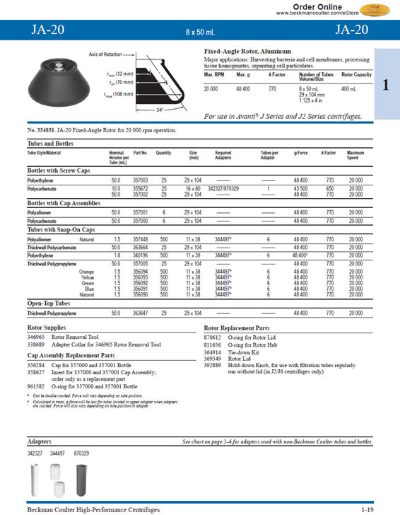 贝克曼beckman离心机转子JA-20全新现货北京嘉信日盛科技有限公司