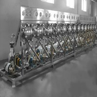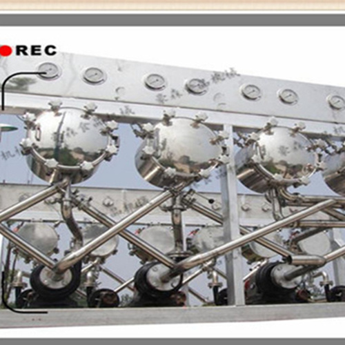 浓缩精制是整条生产线重要的单元,淀粉的品质质量在旋流精制单元得到保障。通过物理的方法将淀粉浆中的杂质彻底出去,使其不影响淀粉产品的质量。 从一级离心筛出来的淀粉浆进入16级浓缩旋流洗涤单元,工艺水从旋流站的另外一端泵入以逆流的方式对淀粉进行洗涤。整个旋流站可以分为三个部分,首先淀粉浆通过浓缩旋流站进行脱汁浓缩,浓缩后的淀粉乳进入后面13级洗涤单元,而从溢流出来的细胞液则进入两级回收旋流站对其中所含的淀粉进行回收。从旋流站溢流出来的含大量纤维杂质的废液绝大部分直接外排,很少的一部分仍然进入提取单元的工艺水系统中。从旋流站出来的淀粉乳被泵送到一个带搅拌器的不锈钢淀粉乳储存罐中。 洁净的工艺水从旋流站尾级加入,与淀粉乳混合洗涤,然后溢流又与前一级淀粉乳混合洗涤分离,如此一级一级逆流洗涤使得纤维和细胞液等都随水排出旋流站。采取十三级洗涤能够保证旋流站的洗涤,更好去除淀粉乳中所含的纤维、蛋白等杂质,保证了从旋流站出来的淀粉乳中没有杂质。以此可以保证生产出的淀粉的各项指标都符合标准。