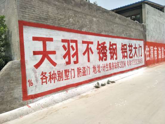 墙体广告 刷墙喷绘墙体广告 也是户外广告一种,它选择在三四级市县区域位置,如国道,省道,县道,市郊县郊路口,乡镇等位置,它分矮墙手绘广告,高墙手绘广告,高墙喷绘广告,矮墙手绘也叫围墙广告,或者矮墙标语广告;高墙手绘广告也叫高墙标语广告,一般选择农户二三层楼的墙面,直接高空作业把模具套在墙上,然后用涂料喷在墙上;高墙喷绘广告,也叫挂画广告,一般选择农户二三层楼的墙面,用喷绘布喷好了的画面, 然后高空安装挂在墙上,其色彩效果都非常好。墙体广告展现多样性发展,墙体广告标语设计不仅按照墙体的大小进行设计,还要结合区域,文化,环境等重要因素。这样的效果不仅美观还能轻而易举的让人们接受。常见的墙体广告制作一般为长方形、方形,在设计时要根据具体环境而定,使户外广告外形与背景协调,产生视觉美感。形状不必强求统一,可以多样化,大小也应根据实际空间的大小与环境情况而定。