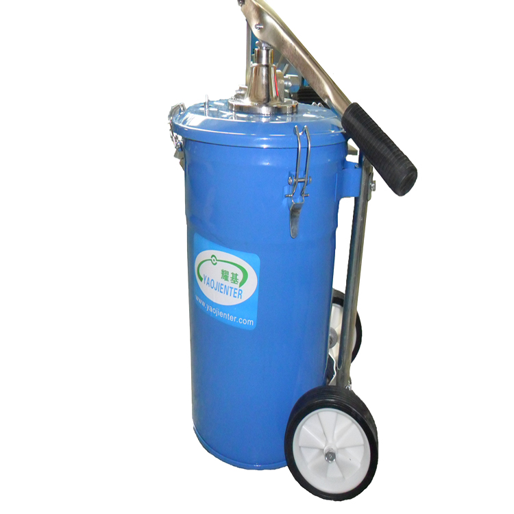 H20(手动)黄油机是以手压为动力的柱塞泵,其外形设计新颖美观、结构紧凑、自重轻、整机模具化程度高,装在小推车上、具有移动灵便,不需电源,用力省、油压高,工作可靠等优点。