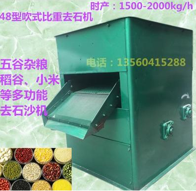 吹式比重去石机的各类形式繁多,但比重去石机不外分为吹式和吸式两种基本形式。它们的原理都是利用物料与沙石等杂质的比重及空气动力学性质差异,将混在物料(稻谷、大米、小米、小麦、豆类、芝麻等)中的沙石、金属块粒等比重杂质进行分离清理;用其他方法难以达到这一目的。本机采用的是吹式比重去石原理,其具有动力小,重量轻,操作简单,不需要固定在支架上,可以随意移动使用等特点,去石效果达到97%。本品牌畅销几十载,远销内蒙、东北、华北一带;深受两广、两湖、江浙沿海等地的用户认可和好评。该吹式比重去石机适用对象为稻谷、大米、小米、小麦、豆类、芝麻以及果实类药材等物料的去石除杂,是各类型加工厂、粮店以及食品加工厂必备的机器之一,欢迎大用户商友来电洽谈。