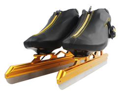 碳纤鞋壳,超轻,不变形,不断裂;双层防冰渣设计,保暖防冻;刀片三点固定,安全稳定,不易脱落;芭扣设计,稳定脚部。