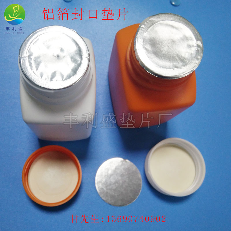 铝箔封口垫片适用于PE、PP、PS、ABS、PET及玻璃瓶等各种材质的容器封口,可广泛应用于药品、食品、化妆品、油品等各种行业,具有防盗、防伪、防潮(防渗漏),延长产品储 存期。