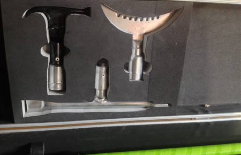除冰器具操作头按照作用设计成不同形状,使用时可以通过敲、铲、钩等方式有效除去瓷瓶、支架、导线及杆塔上的积雪及覆冰。使用时,根据需要从套件中选取合适的除冰器具,将其安装到绝缘杆的一端并拧紧后即可使用。绝缘杆分为长、短两种规格,可以根据现场情况进行任意组合,以获取合适的长度来满足不同场合的需求。