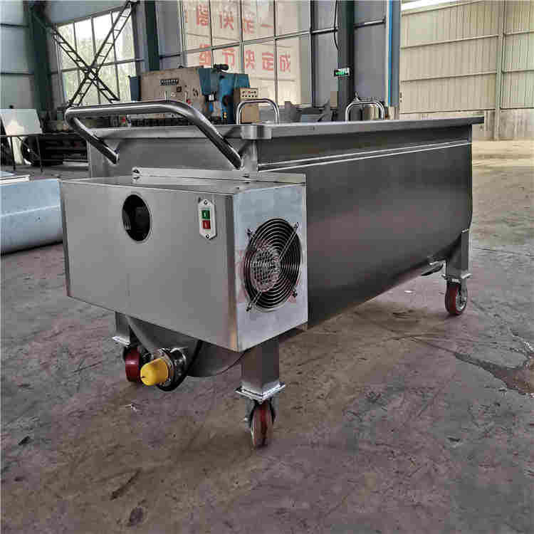 组成:采用304不锈钢材质,可带搅拌、保温、加热装置,为每一台料车设置顶盖,可用于食品物料运输、储藏、搅拌、加热、保温和周转。