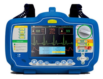 体外自动除颤(AED): 自动分析 & 充电x3 可编程自动能量水平选择 屏幕提示和语音提示.