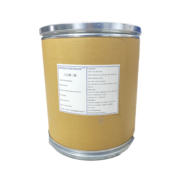 三乙烯二胺是一种非泛黄性固体胺,缩写为TEDA, 无水固胺为可燃性结晶,极易潮解,室温时易升化。熔点158,沸点174,闪点50(开杯)。固胺易溶于水、丙酮、苯及乙醇,溶于戊烷、已烷、庚烷等直链烃类;能吸收空气中的CO2并发黄。呈弱碱性。