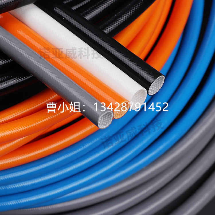 内纤外胶玻璃纤维套管,是由无碱玻璃纤维纱编织成管后,涂以硅橡胶高温处理而成。具有比硅树脂玻璃纤维套管更加良好的介电性能、自熄性和柔软性,广泛用于H级&N级电机、家用电器、电热设备、特种灯具等绝缘保护。