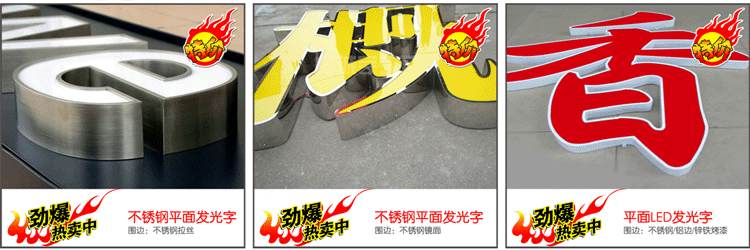 业务范围:led发光字平面发光字LED点阵发光字、LED冲孔发光字、树脂字、无边发光字、超级发光字、3D发光字、通体发光字、全彩发光字、高档炫彩发光字、迷你发光字、树脂发光字、特大铝板或其他金属板发光字、特大楼盘挂网发光字、LED亮化工程、金属精工字、金属烤漆字、水晶字及其他字;