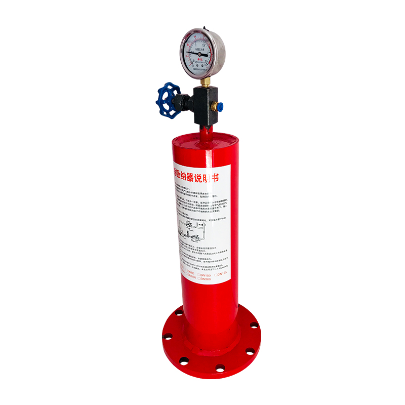 水锤消除器的内部有一密闭的容气腔,下端为一活塞,当冲击波传入水锤消除器时,水击波作用于活塞上,活塞将往容气腔方向运动。活塞运动的行程与容气腔内的气体压力、水击波大小有关,活塞在一定压力的气体和不规则水击双重作用下,做上下运动,形成一个动态的平衡,这样就有效地消除了不规则的水击波震荡。