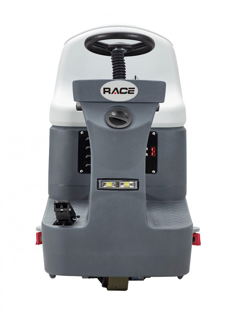 RACE 1060Pro Max是一款全新设计大型前轮驱动驾驶式双刷洗地机,机器最大可配备2个20寸刷盘,200L清水箱/210L污水箱容积,整机设计可标配6*6V/200AH铅酸电池或快充磷酸铁锂36V/200Ah。