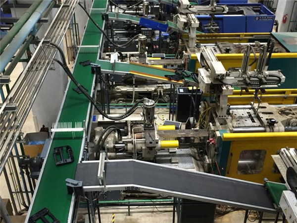 注塑机汇合皮带流水线