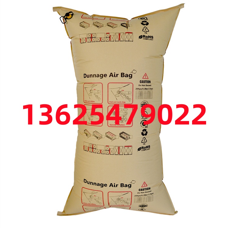 集装箱充气袋的使用方法为了正常使用,如果货物包装有尖锐的角(如木托盘、木箱等),在充气袋的两面加入瓦楞纸板或其他下整板材右有效保护充气纸袋不被扎破。在充气袋出现之前人们普通使用木托架或泡沫塑料等来填充货物之间的缝隙。但是这些材料在成本和保护效果上都不能令人满意,且受到诸多限制,随着环保要求的日益提高,木质/泡沫塑料等填充材料正在受到舍弃。充气袋不仅成本低廉,抗压及震能远远优于其它填物。充气袋使用简单,大大约装箱时间,有效降低运输成本,提高公司形象,已经被越来越多功能用户采用。